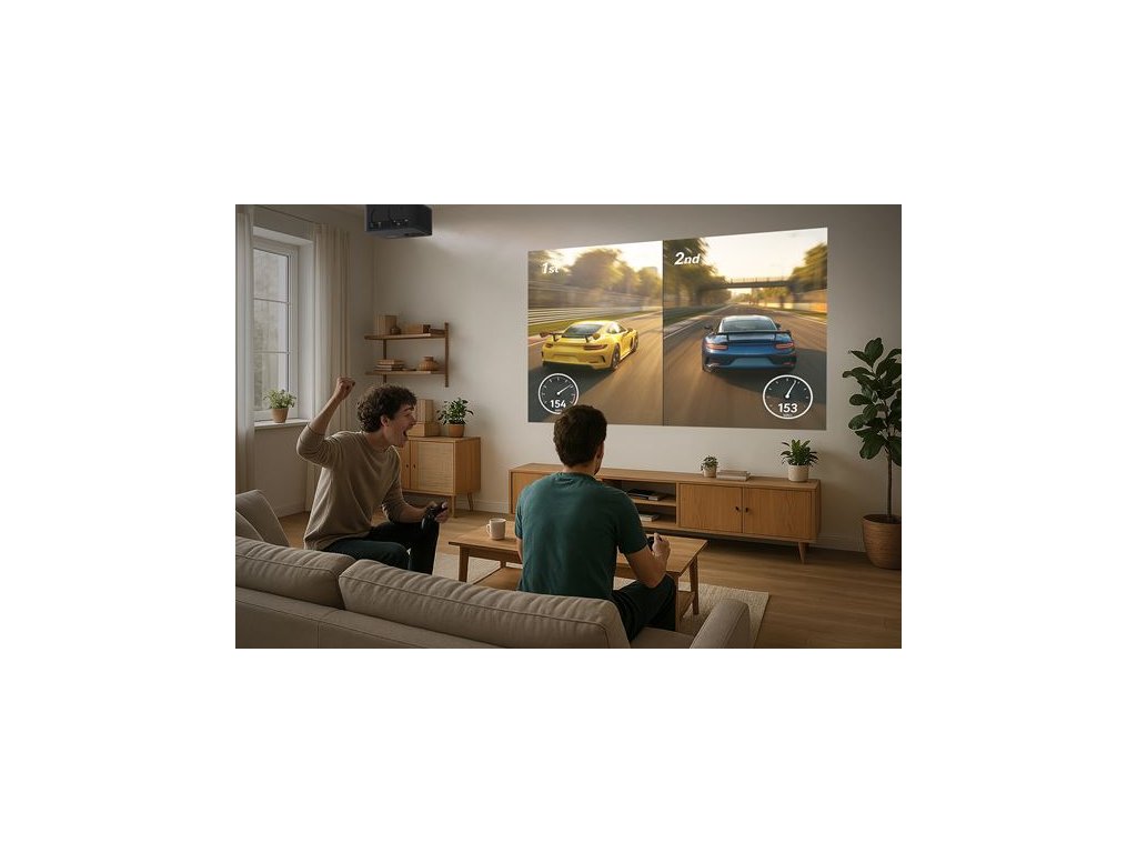 Stačí připojit notebook, konzoli nebo TV stick a užít si filmy a hry na velkém plátně bez údržby.